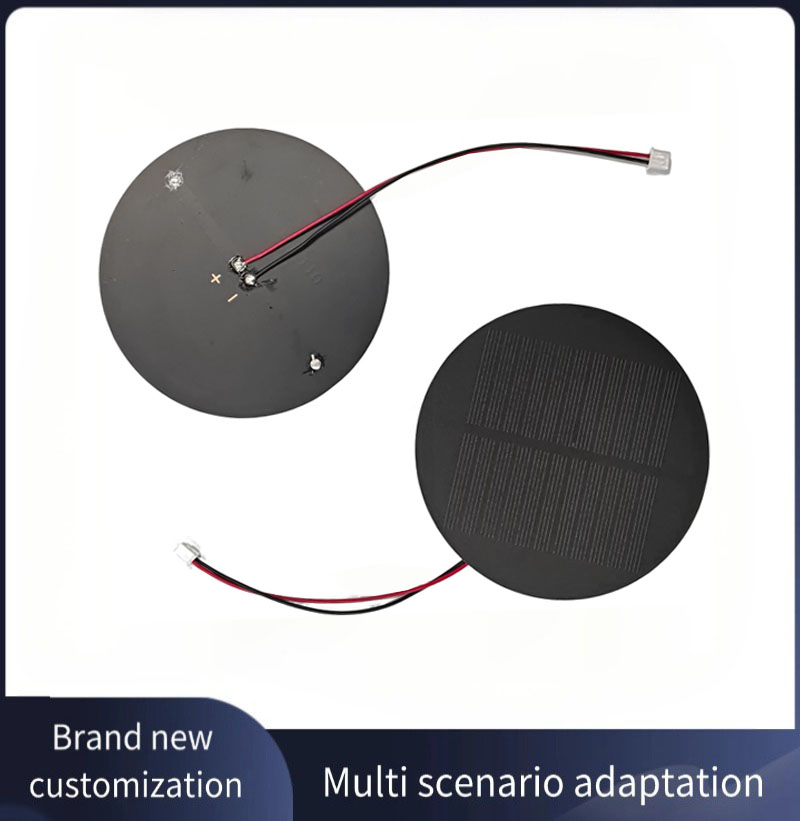 1.5W 5.5V Customized Small Mini Round Circle Solar Panel Diameter 110mm Perc Monocrystalline Silicon Solar Cell PET Abrazine PCB Backsheet Red Black Wires Lightweight DIY Solar Products