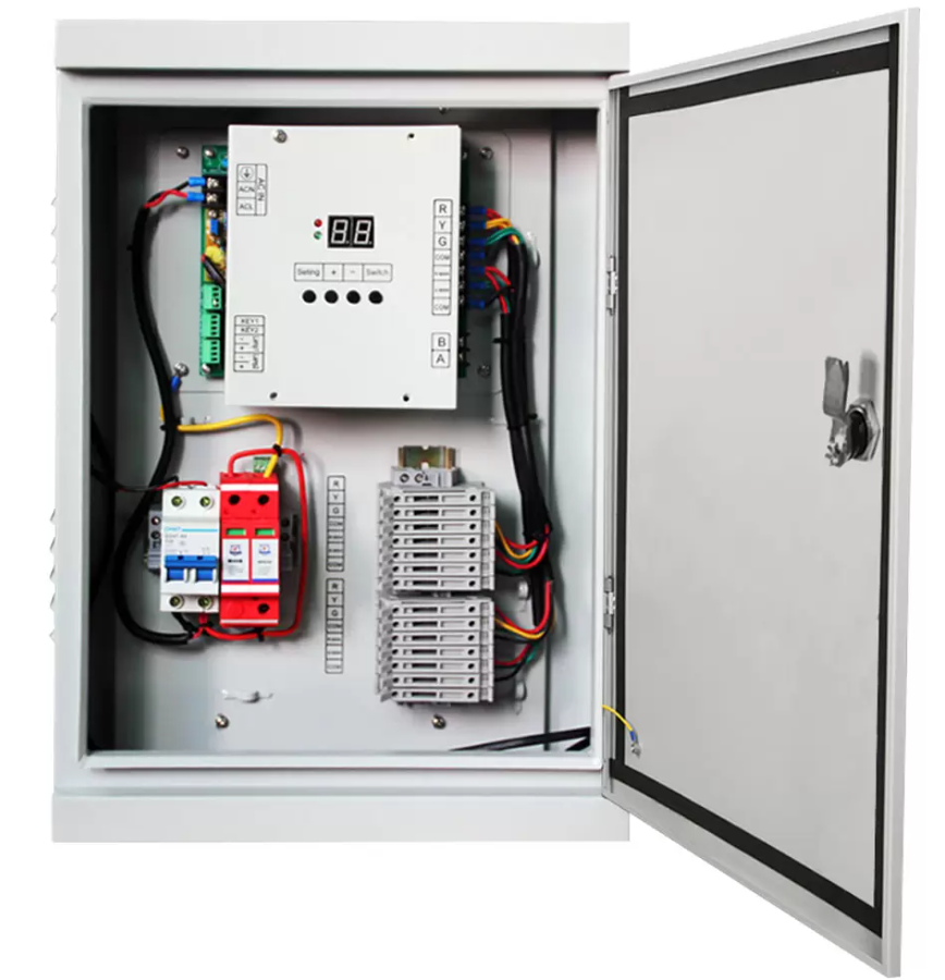 The Pedestrian Crossing Traffic Controller is a specialized traffic signal control system designed for one-way street pedestrian crossing applications. It is available in two configurations: a 5-channel model and a 12-channel model. The 5-channel model supports single-stage pedestrian crossings and is ideal for basic crossing scenarios. The 12-channel model provides enhanced functionality, enabling two-stage pedestrian crossings and supporting multiple control modes such as networked operation, time-based scheduling, flashing yellow signals, and pedestrian-initiated crossing.